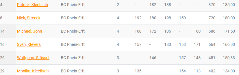 2. Spieltag 2025/2026 Beitrags-Autor:Kleefisch-M Beitrag veröffentlicht:21/09/2025 Beitrags-Kategorie:News Recklinghausen. Leider konnte kein Spielfluss entstehen, da andauernd Störungen an den Bahnen war. Es wurden 3 Spiele gewonnen, also 6 Punkte zzgl. 3 Bonuspunkte. Bester Spieler war Patrick mit einem Schnitt von 185 Pins. MK Das könnte dir auch gefallen Termine Q3 2025 16/06/2025 50 Jahre BC Rhein-Erft 25/08/2024 Rückrundenstart 2025 02/02/2025